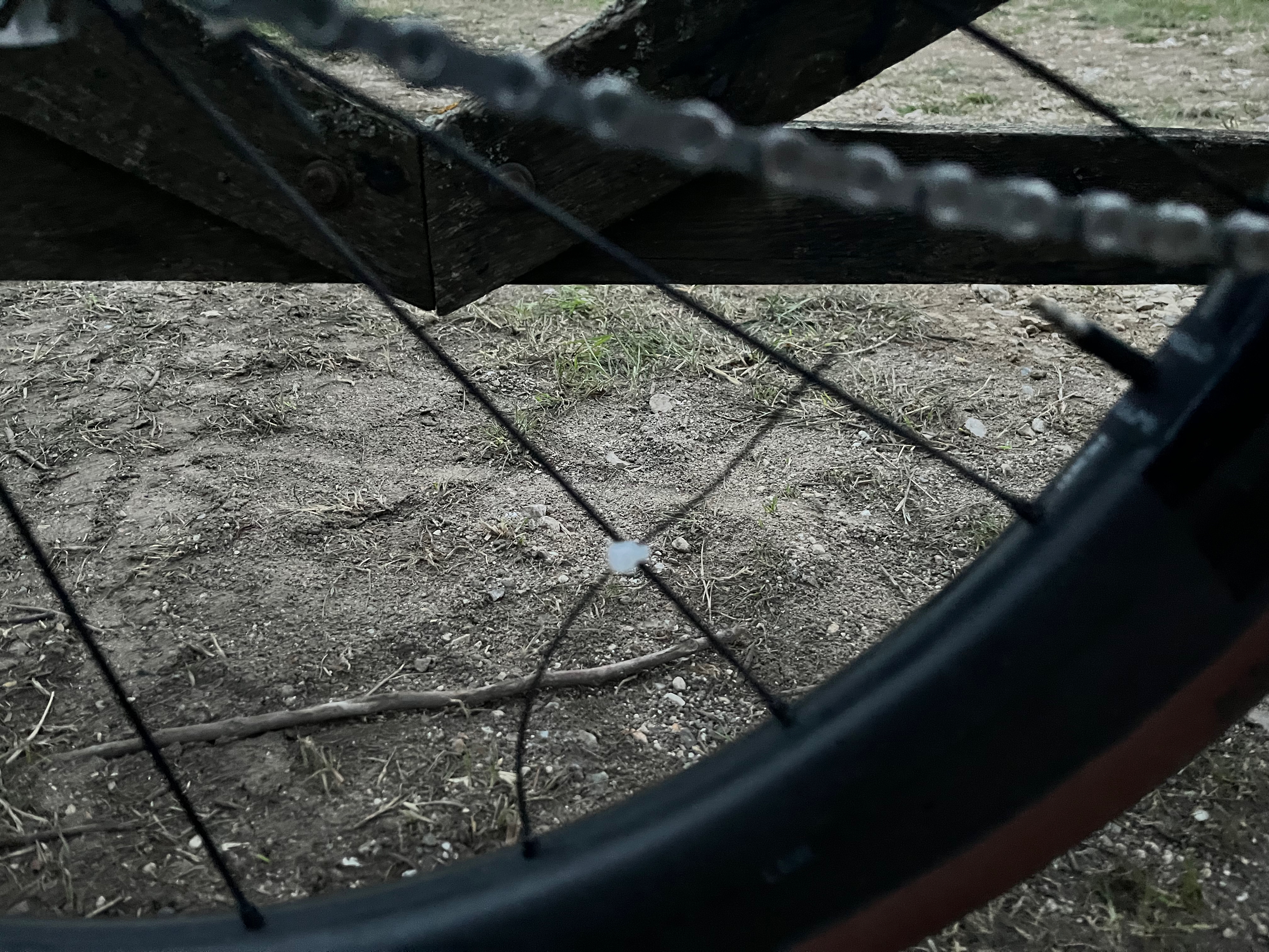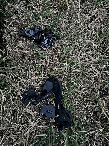 Despair hit me, followed by a string of curses, of course. I spent the next few minutes trying to regain some composure and assess the situation. Ian was incredibly helpful, trying to calm me down amidst my muttered expletives; I was struggling to do simple things like twisting the broken spoke around a good one or splitting the chain. My first priority was to inspect the bike. One spoke was gone, and the rear derailleur had completely snapped off the mech hanger, getting twisted into the rear triangle. I didn’t have any spare spokes or nipples with me, nor, of course, a spare rear derailleur. Because who packs a spare Di2 derailleur for a long ride, right?